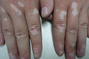 一般白癜风发生于接触某些化学物质以后,或在冻疮、湿疹、神经性皮炎、牛皮癣或盘状红斑狼疮等炎症消退时,局部皮肤也可出现,初期症状病变呈纯白色圆形或不规则的脱失斑,表面光滑,边界清楚,边缘色素增多。变白的皮肤对日光较正常皮肤敏感,稍晒太阳即发红。病程经过缓慢,渐向四周扩大,互相融合或达到一定程度时停止蔓延,历久不变。发病时间短、面积小,如能得到早期治疗,疗效较好,故早期治疗至关重要。
