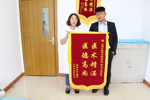 今年五月份,一位患者将印有“医术精湛、医德高尚”的锦旗送到了陈太平主任手中,这位患者被颈部白斑困扰多年,近年来,久治无效,直到遇见陈主任,经过精心治疗,才得以康复。